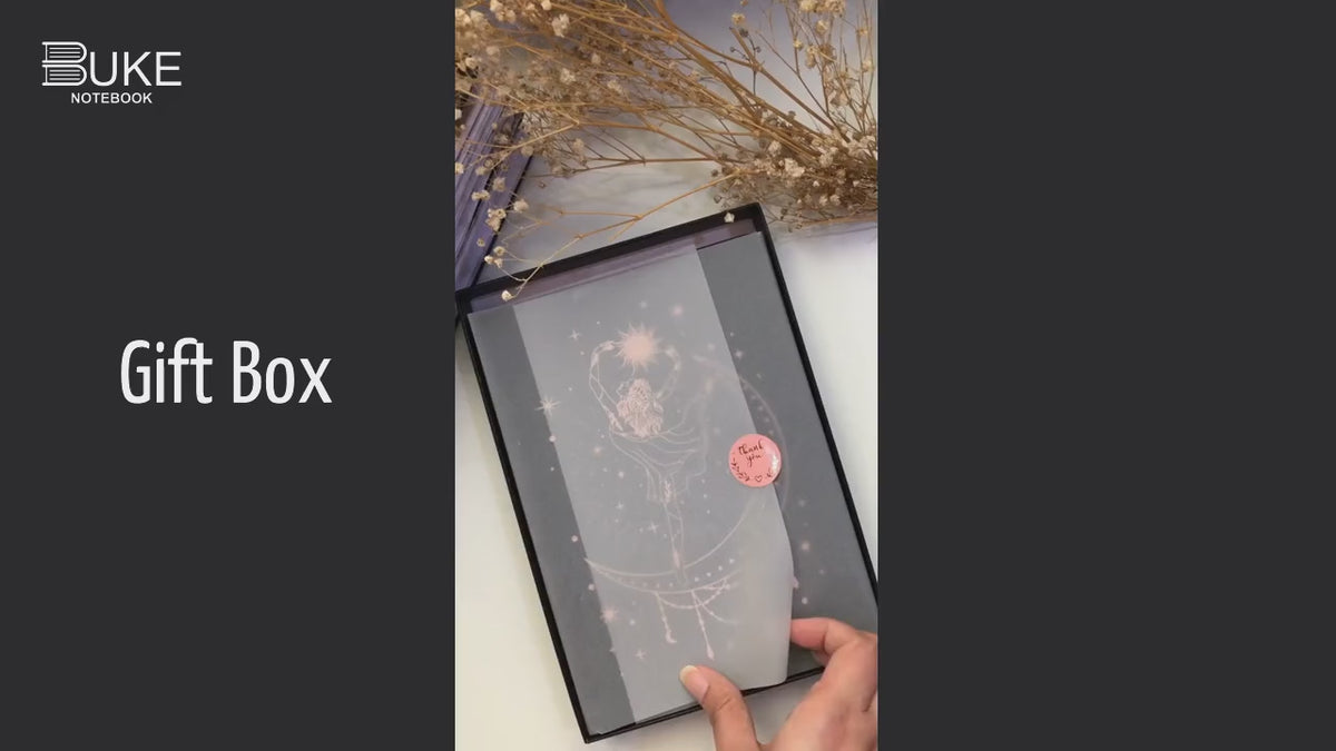 Elegance meets the cosmos in the BUKE A5 Bullet Dotted Journal, featuring a stunning rose gold foiled illustration of a celestial dancer on a matte black vegan leather cover. With 180GSM ultra-smooth bamboo paper, engraved moon phase edge gilding, and lay-flat binding, this journal is a perfect blend of beauty and performance – designed especially for BUJO lovers and spiritual creatives.